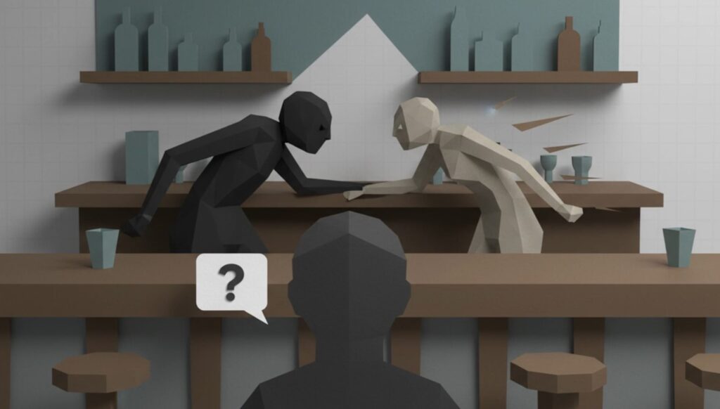 Schauen wir uns exemplarisch einen Konflikt zwischen zwei Verhaltensmöglichkeiten in einer brenzlichen sozialen Situation an einem Bar-Tresen an: