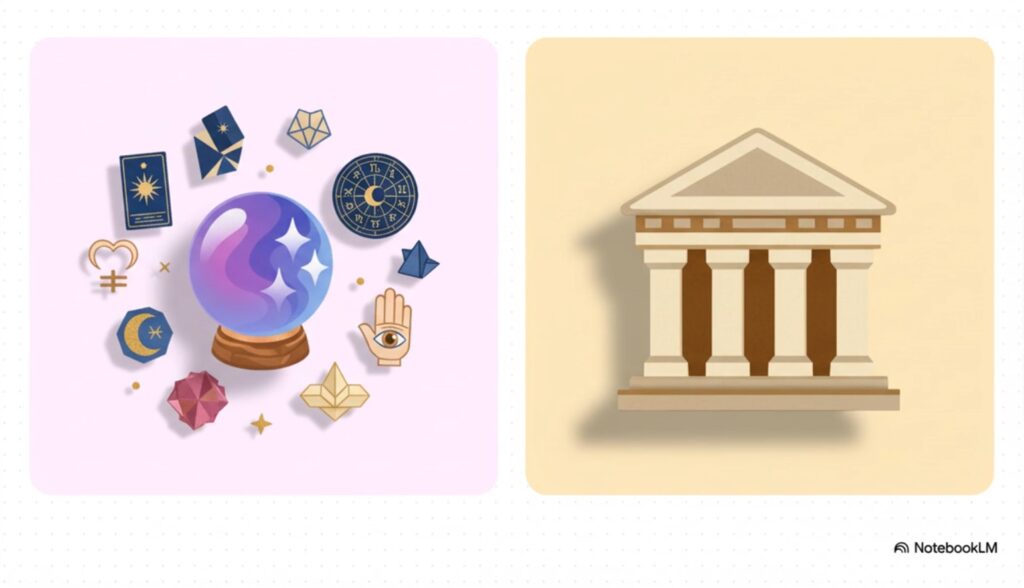 - Religion: Ein umfassendes Glaubenssystem, das oft eine organisierte Struktur aufweist und ähnliche Grundbedürfnisse wie Esoterik abdecken kann, aber in ein Gesamtsystem integriert ist.