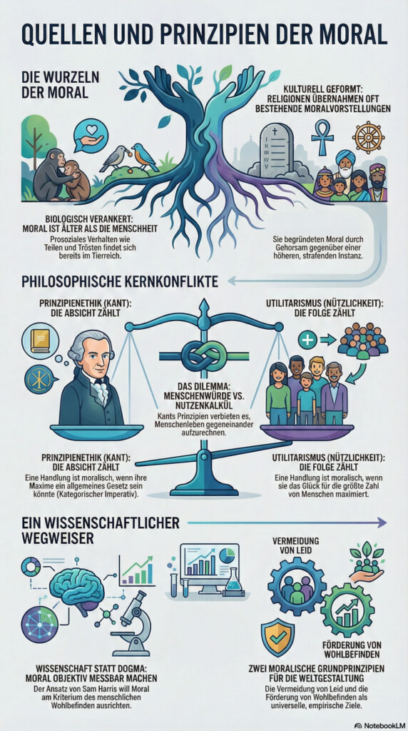 - Welchen Ansatz verfolgt Sam Harris, um moralische Fragen wissenschaftlich zu untersuchen?