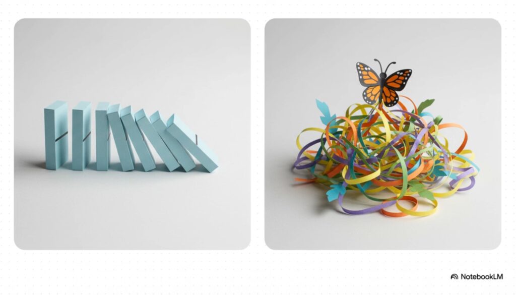 - Emergenz: Das Entstehen von neuen Eigenschaften oder Phänomenen auf höheren Organisationsebenen eines komplexen Systems, die nicht aus den Einzelbestandteilen abgeleitet werden können.